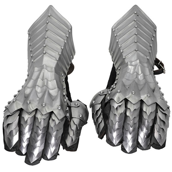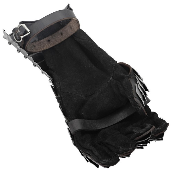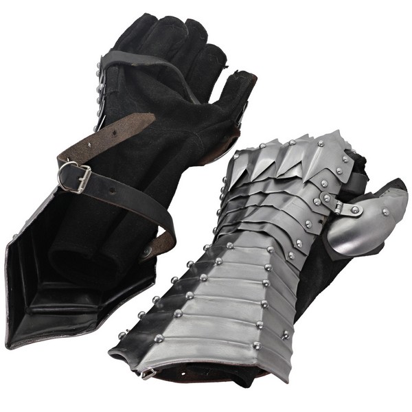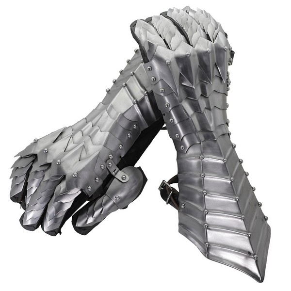 スチール製 ドラゴンスケイル ガントレット 左右ペア レザーグローブ付き